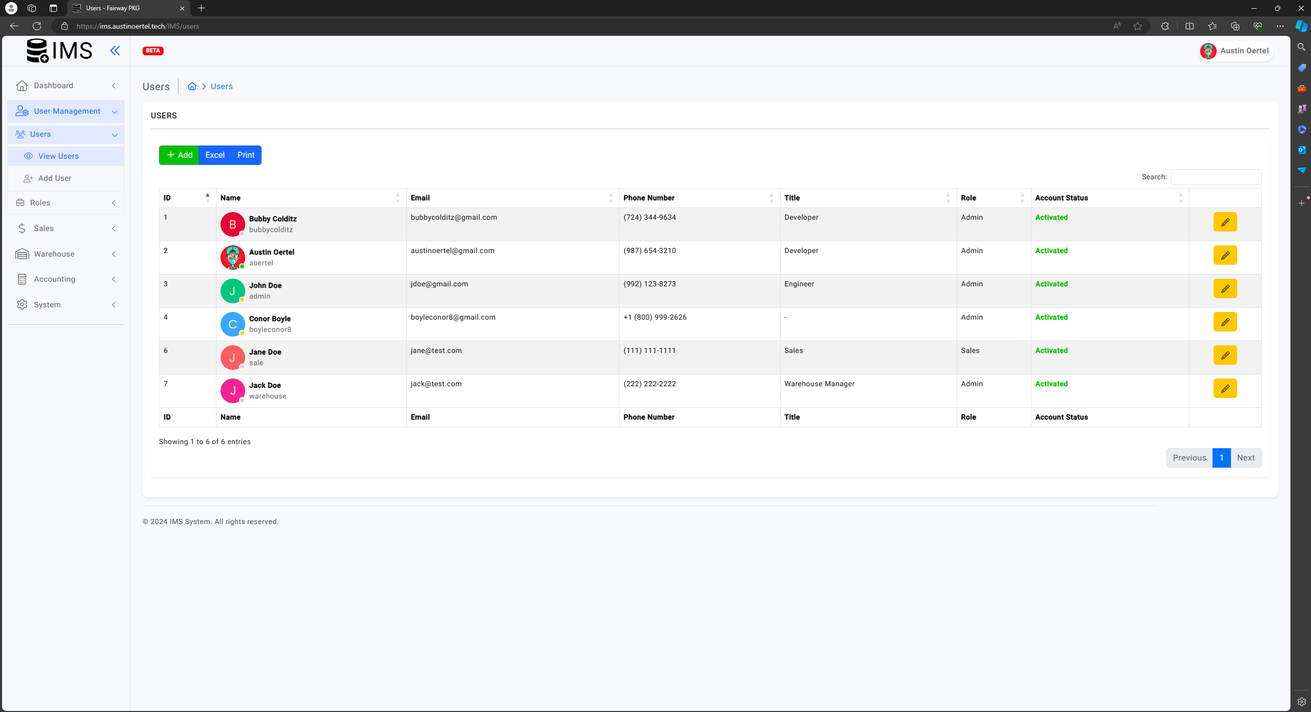 Developed a comprehensive Inventory Management System using PHP, JavaScript, HTML, and CSS to streamline inventory tracking, sales management, accounting, and customer relationship management for businesses. Login: sale Password: 1234